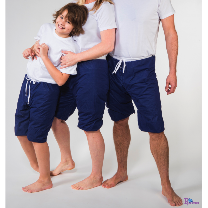 Ce pyjama peut absorber une miction complète. Version en bleu avec des accents en blanc. Idéal pour passer des nuits chez les copains, en vacances ou à la maison.